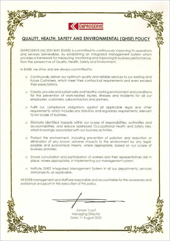Quality, Health, Safety and Environmental (QHSE) Policy